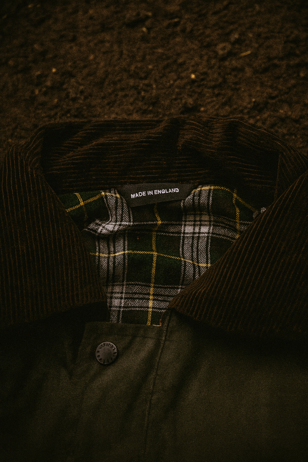 The Tetbury Waxed Jacket is made from 100% premium waxed cotton, crafted in the UK. It features a natural paraffin and beeswax finish for water resistance, a classic tartan check lining, and durable hardware — including a two-way heavy-duty zip and studded corduroy collar. Built to last, inside and out.