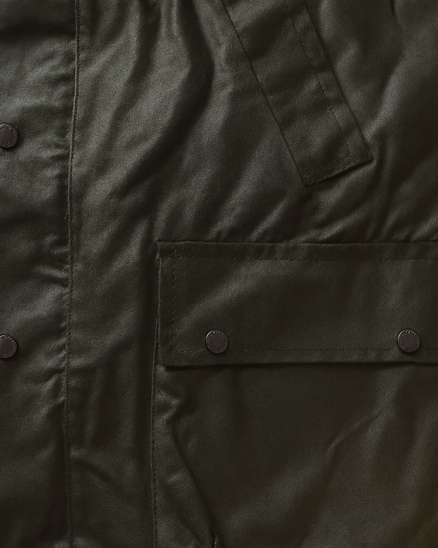 It comes waxed for water resistance — built to handle weather, not just look the part. Over time, it can be re-waxed to maintain protection while letting the fabric age naturally.